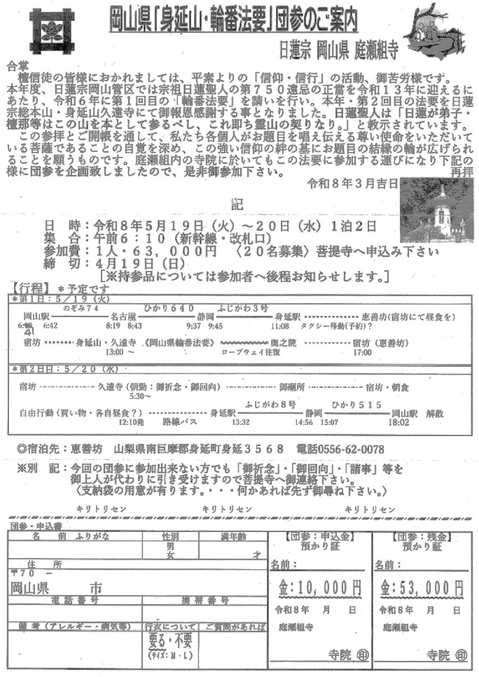 身延山・輪番法要のご案内